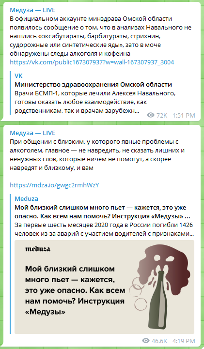 Тут два варианта. Хотели убить и не рассчитали дозу, потому что дебилы. Или не хотели убить, а хотели снять и выставить видео и тоже не рассчитали дозу, потому что дебилы. (Очень меня, кстати, насторожило это «случайное» фото Навального в аэрпорту и видео в самолете, хотя это может быть невинное совпадение).