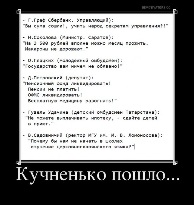 Кстати, помните тут бабцу, что заявила, что "государство детям ничего не должно потому что не просило никого рожать"? Все, её сливают. Уже по госТВ показали тот самый ролик с её заявами, да и и она уже сменила риторику с "ничего не было" на "не так поняли". Руководство её уже заявилось что не поддерживает таких заяв и что она походу оборзела.